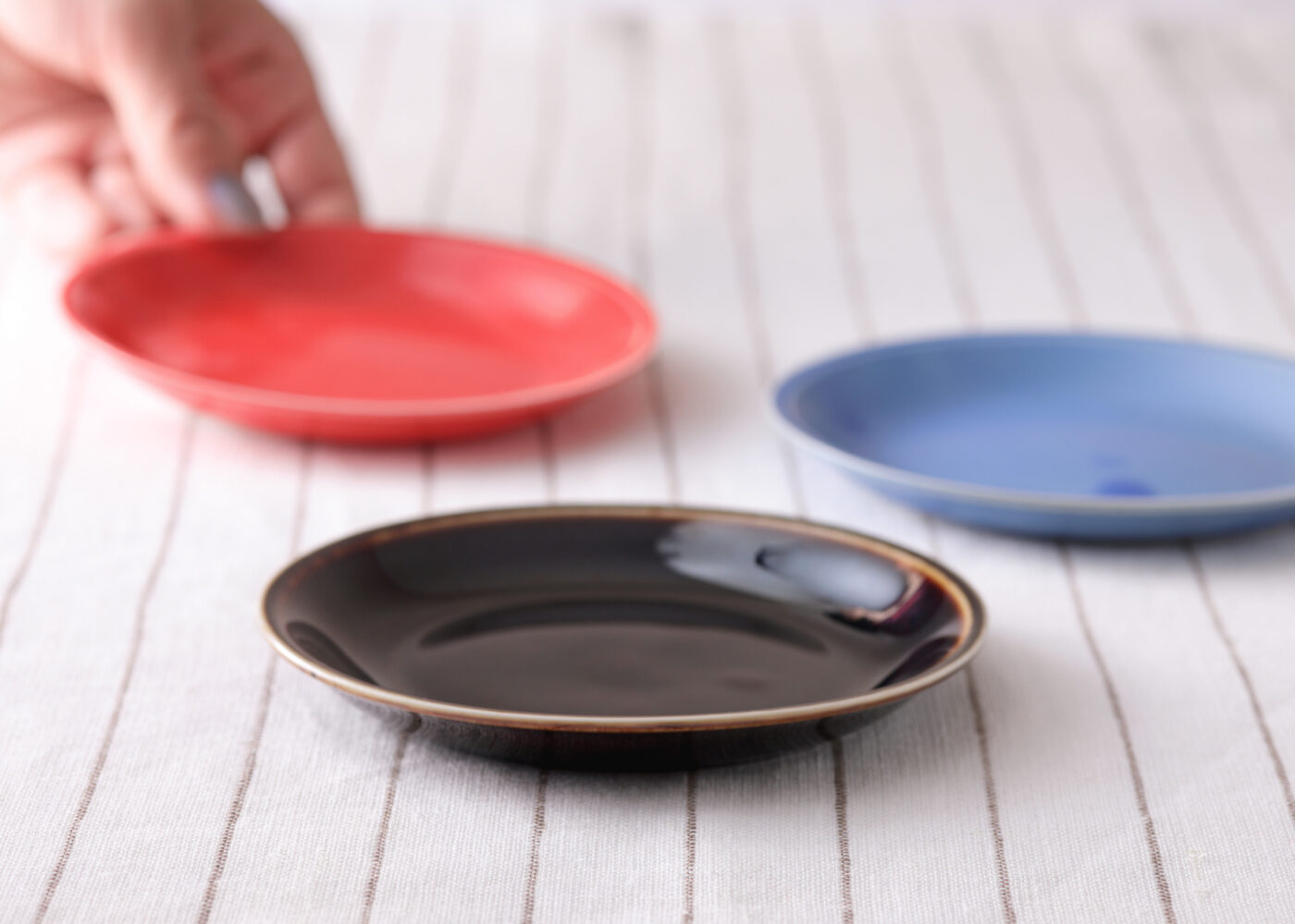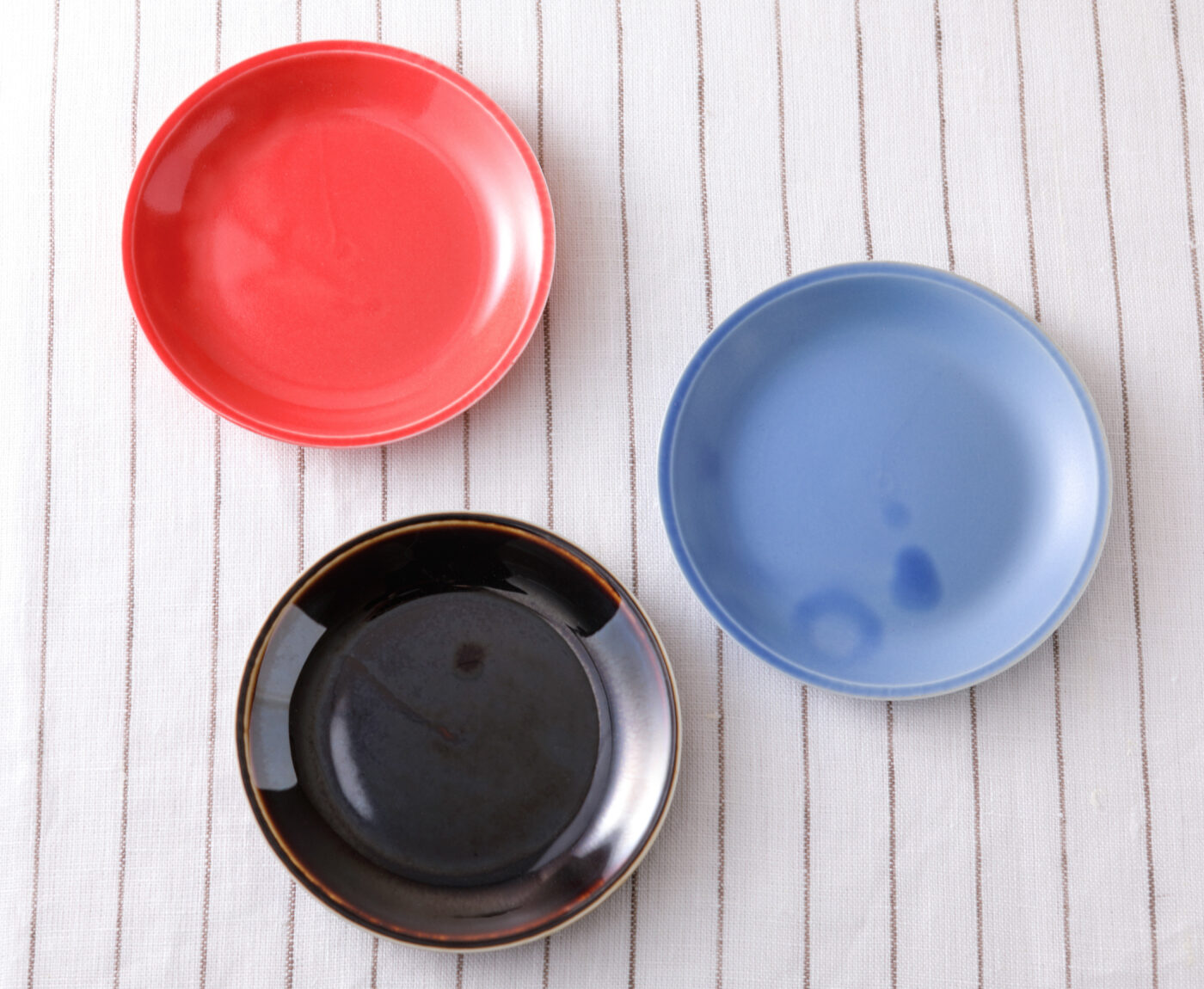 リサイクル土をベースに、さまざまな色合いの釉薬をかけた豆皿はテーブルを華やかにしてくれること間違いなし🌱
