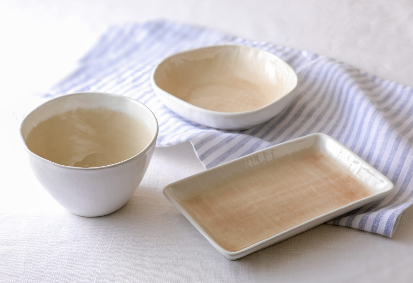 ニュアンスのあるリネンカラーが魅力の和食器シリーズ。