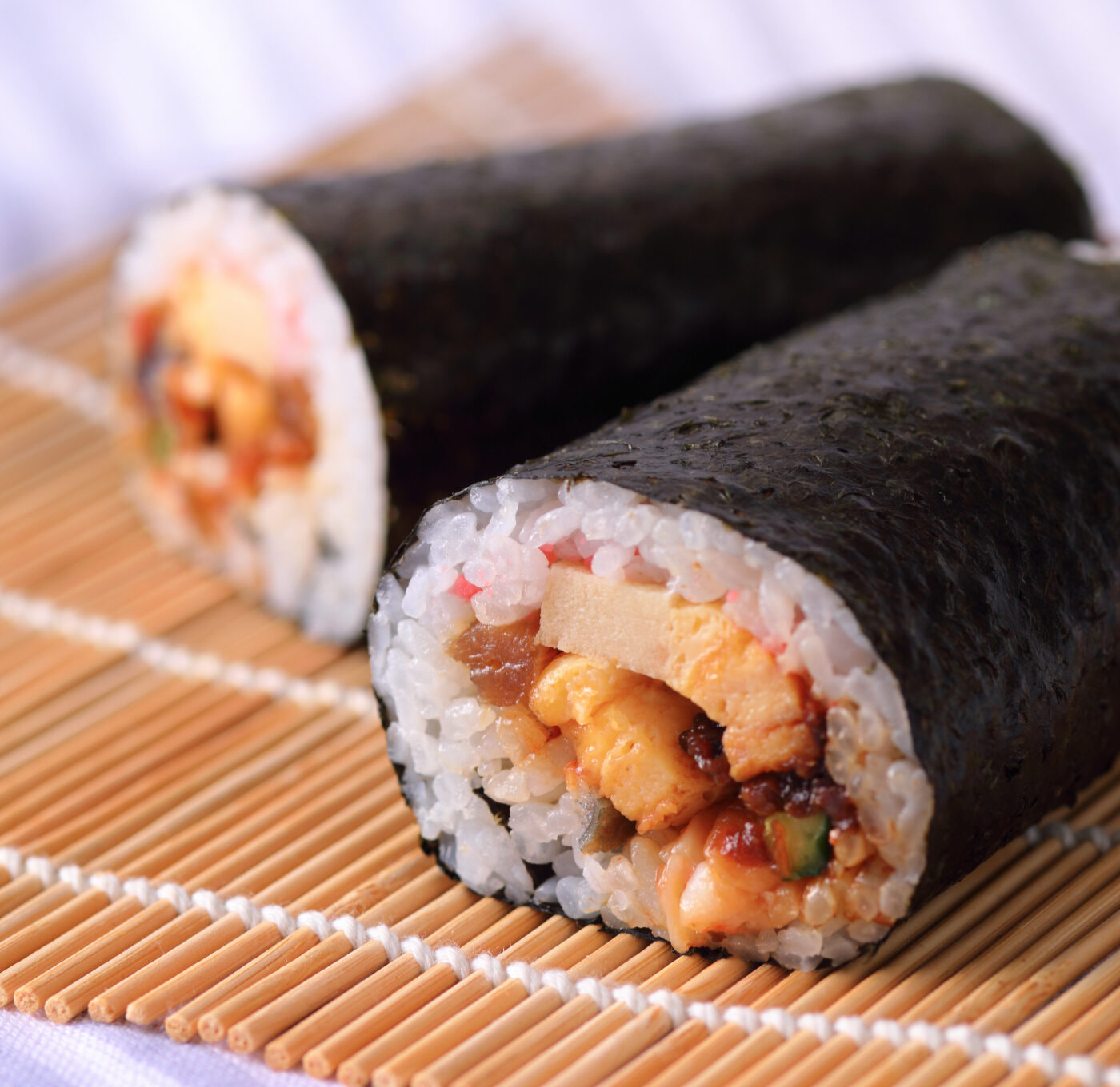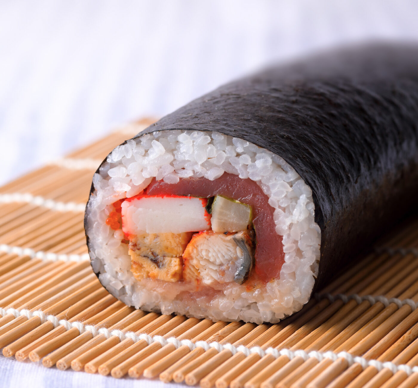 恵方巻は【丸ごと一本を食べ終わるまで黙って食べる】のがよいとされていますが、それは恵方巻には「福を巻き込む」という意味が込められているから。