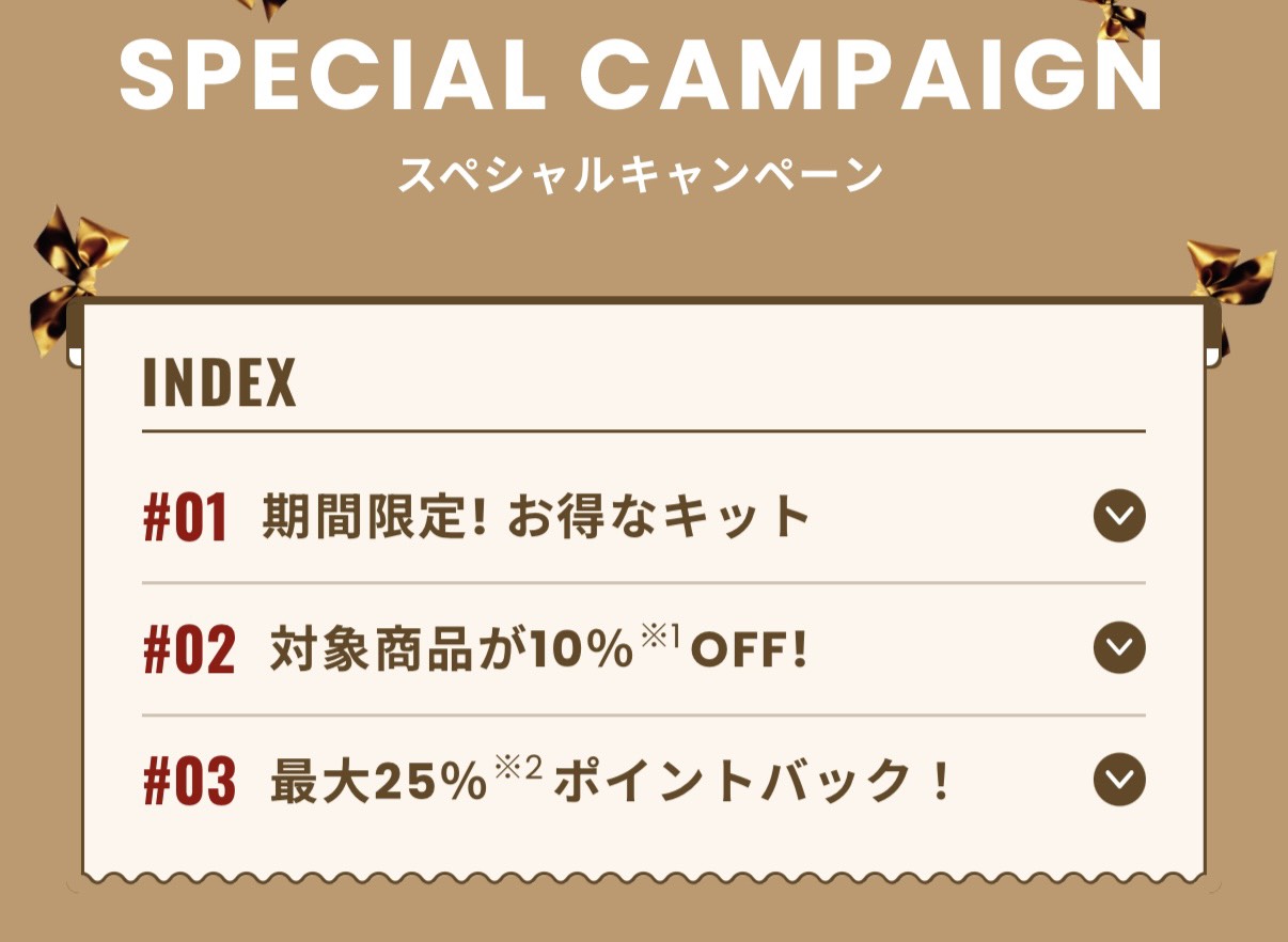 今しか手に入らない期間限定のお得なキットがWEBサイト含めて60種類以上!