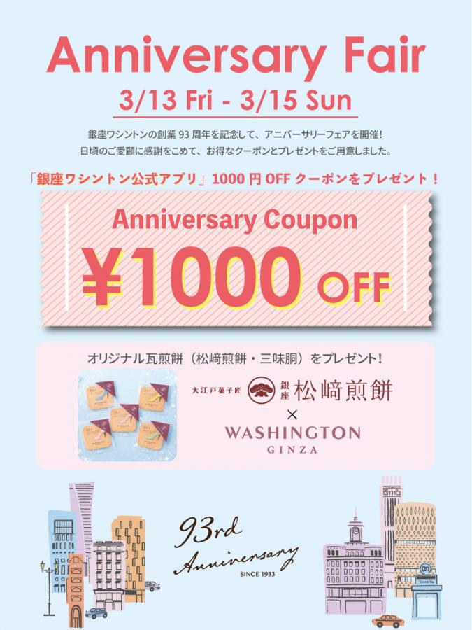 日頃のご愛顧に感謝を込めて、3月13日(金)〜3月15日(日)の期間、GINZA WASHINGTONにて、アニバーサリーフェアを開催いたします。