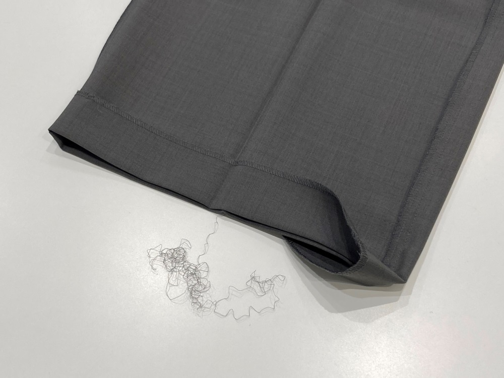 また、裾がほつれてくるのが“イヤ“という方には、ステッチ仕上げに変更することもできます。商品をお持ちになり、スタッフにご相談ください。(表にミシン目が見えるお仕上げとなります)