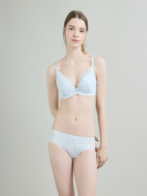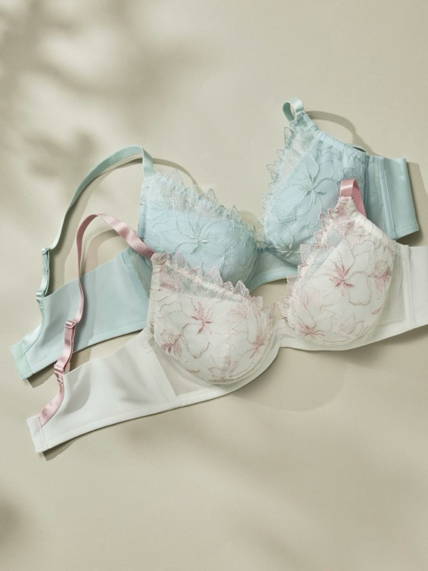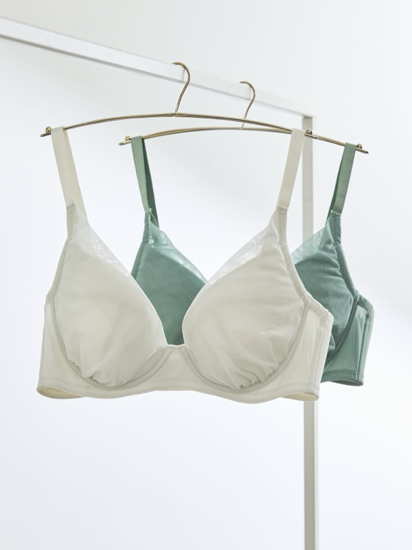 バストの突出をおさえ、トップ周径を効率的に減らすことで着やせ効果のあるブラジャー。